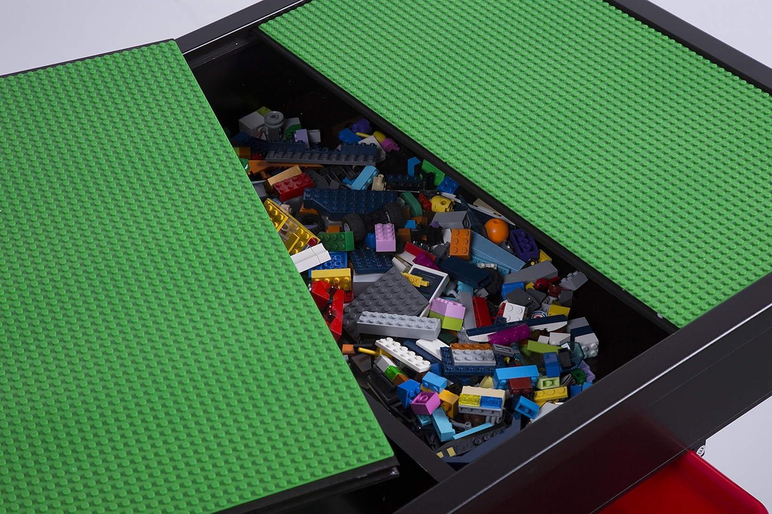 MULTI ACTIVITY TABLE: The table features an expansive double-sided play table,one side of the reversible play board is compatible with blocks, giving kids a fun space to build their very own creations. The other side is a smooth surface perfect for train sets, puzzles, doll house and other toys.