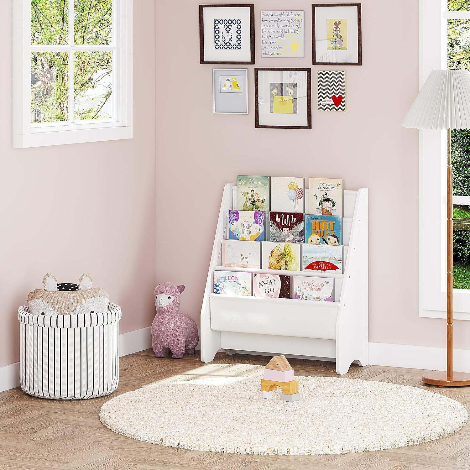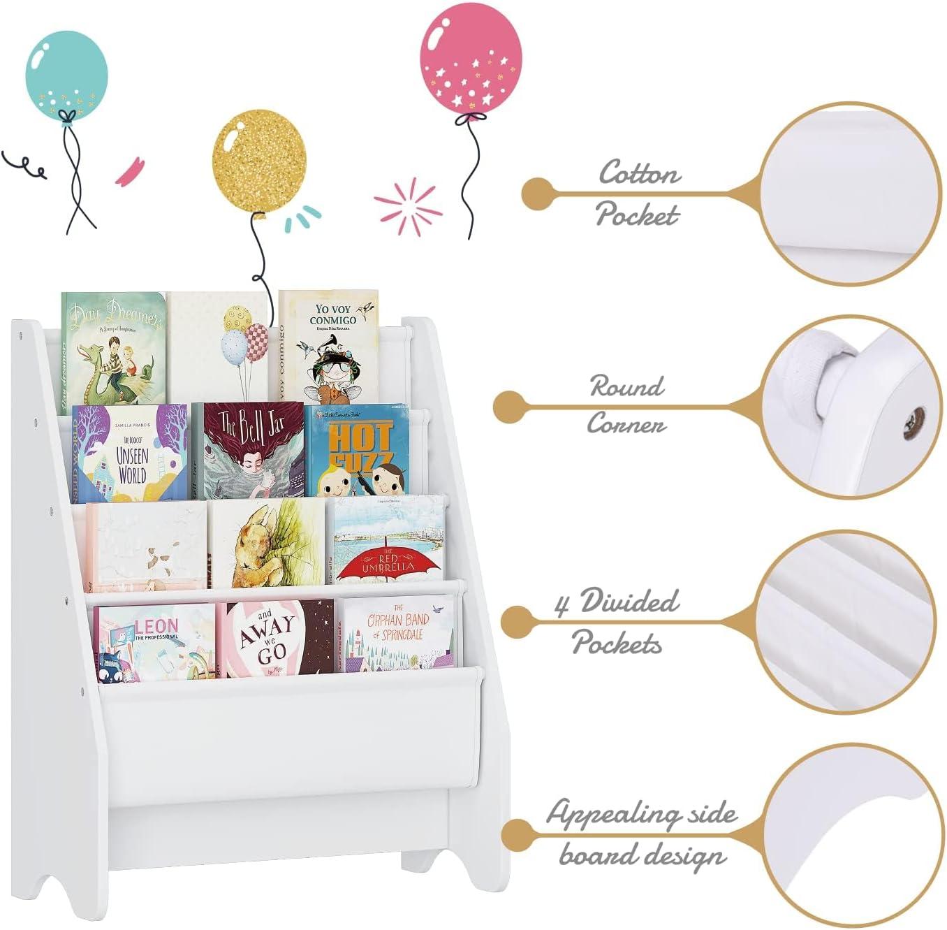 UTEX Kids Bookshelf Storage, Book Shelf for Kids Rooms, 4 Tier Sling Toddler Bookshelf, Magazine Book Rack, Children Book Organizer, White(White)