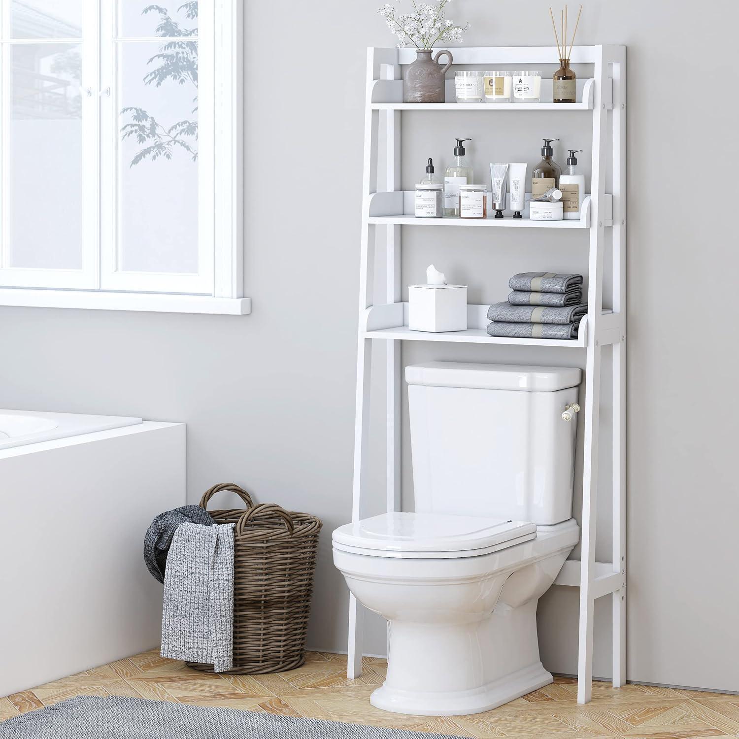 UTEX Over The Toilet Storage Shelf, 3-Tier Over Toilet Bathroom Organizer, Above Toilet Storage Rack (Wood Grain)(White)